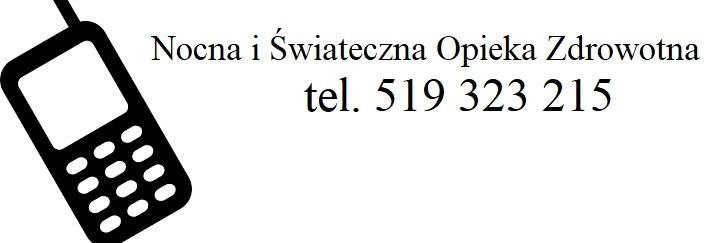 Pacjentom chcącym skorzystać z Nocnej i  Świątecznej Opieki Zdrowotnej zalecamy uprzedni kontakt telefoniczny pod nr 519 323 215 lub 52 336 05  59.