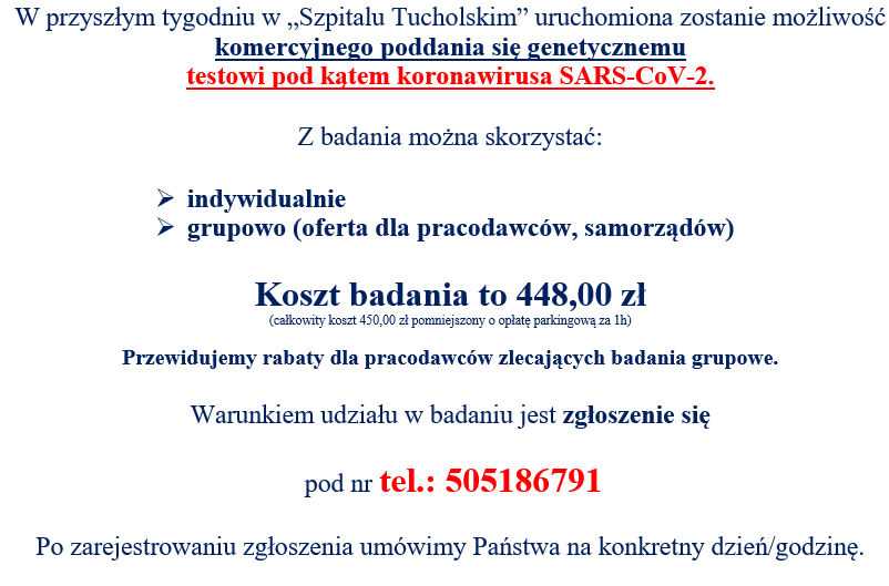 erdecznie dziękujemy, za to że Zarząd Powiatu Tucholskiego - doceniając trudną sytuację naszego Szpitala, związaną z pandemią COVID-19 i wynikającą z niej pogarszającą się sytuacją finansową placówek medycznych – czasowo obniżył nam czynsz za dzierżawę budynków.