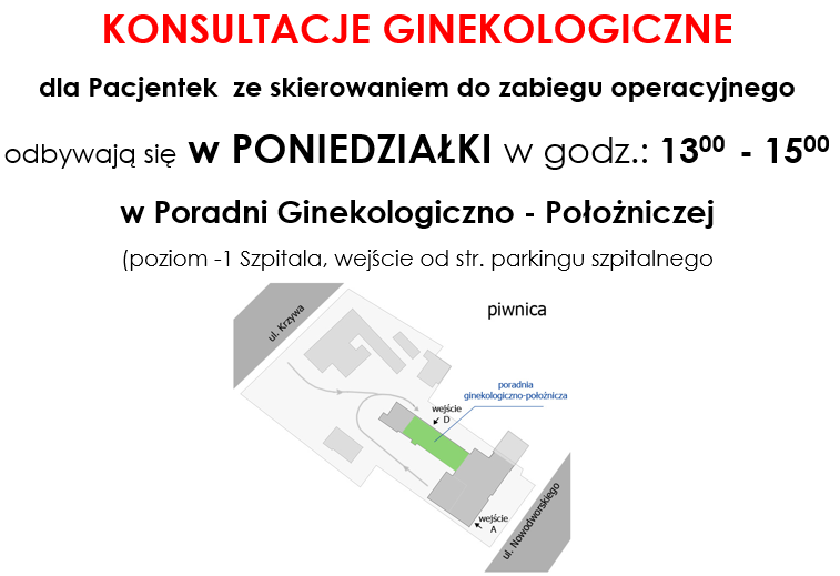 Informujemy, że dzisiaj nie odbędą się przedoperacyjne konsultacje ginekologiczne (dr R. Nowacki).