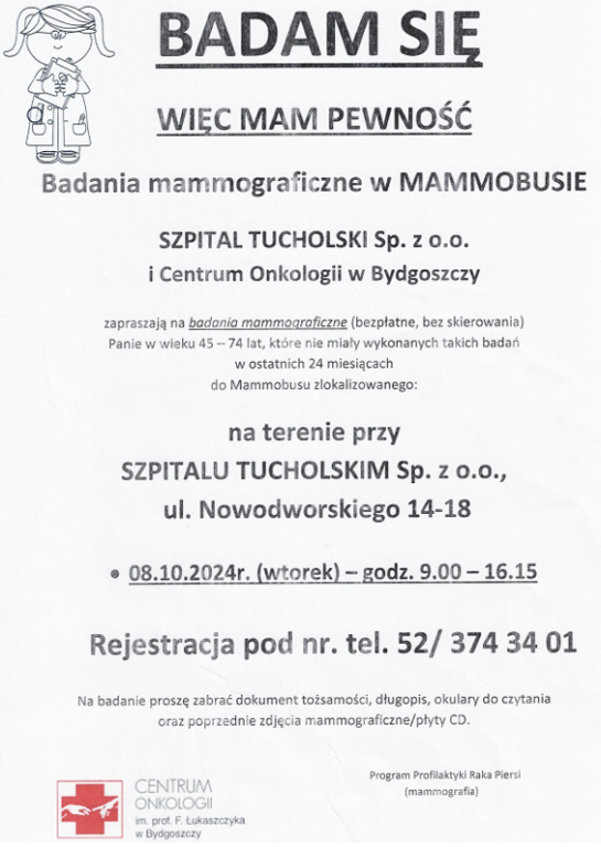 20 wrzesień 2024 | Mammografia - zbadaj się! |