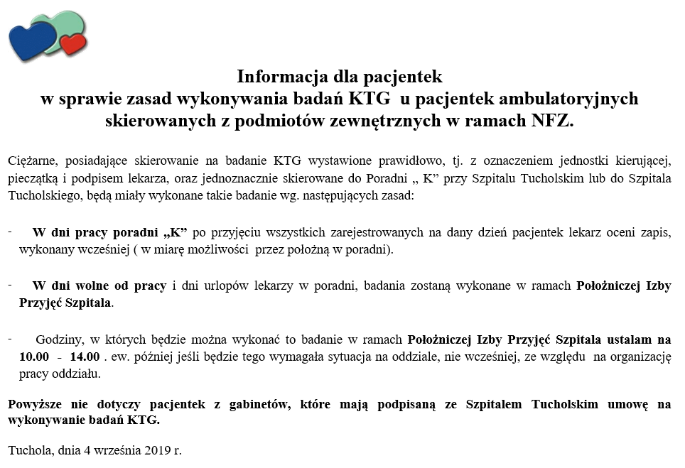 Od dn. 04.09.2019r. w „Szpitalu Tucholskim” funkcjonować będzie jedna wspólna rejestracja do wszystkich poradni specjalistyczna zlokalizowana na parterze szpitala, w miejscu gdzie dotąd funkcjonowała rejestracja do (m.in.) poradni chirurgicznej.