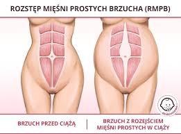 U niektórych kobiet, szczególnie jeśli rodzą duże dziecko, może dochodzić do patologicznego rozejścia mięśni prostych brzucha.