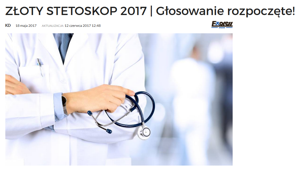 04 lipiec 2017 | lek. med. Monika Konwińska laureatem Złotego Stetoskopu |