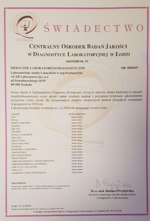 - wewnątrzlaboratoryjną i zewnątrzlaboratoryjną kontrolę jakości wszystkich wykonywanych badań, która gwarantuje niezależną ocenę jakości wyników uzyskiwanych przez laboratoria,