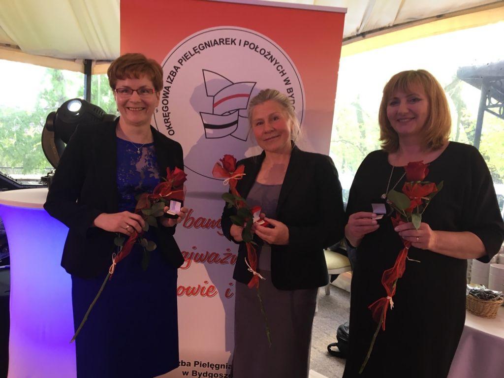 Dwie nasze Pielęgniarki - panie: Bożena Jankowska i Małgorzata Kujawska oraz Położna: pani Mirosława Pozorska otrzymały "Złote czepki", przyznawane za wzorową postawę zawodowa i społeczną, upowszechnianie zasad etyki zawodowej i współdziałanie na rzecz integrowania środowiska zawodowego. Odznaczenia wręczono podczas uroczystych obchodów Międzynarodowego Dnia Pielęgniarki i Krajowego Dnia Położnej. Serdeczne gratulacje!