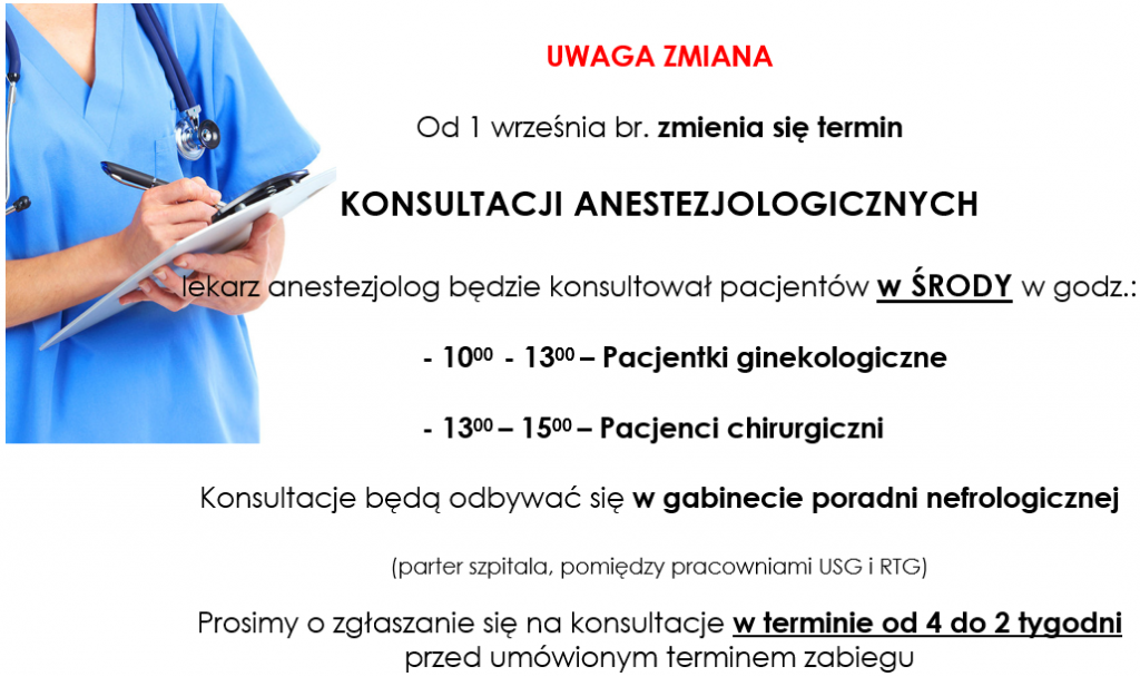 Informujemy, że środowa i czwartkowa (6-7.07.2016r.) wizyta lek. med. M. Troszczyńskiego (DERMATOLOG) została odwołana. Pacjentów z niewyznaczonym nowym terminem prosimy o kontakt z rejestracją poradni.