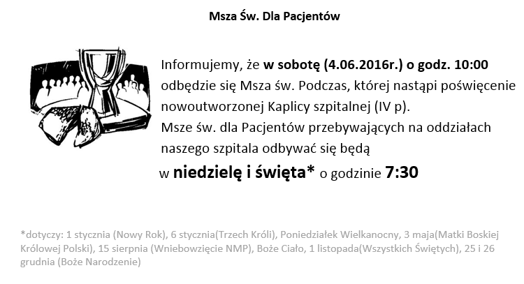 w nowej Kaplicy na IV piętrze (dostępnej dla Pacjentów przez całą dobę).